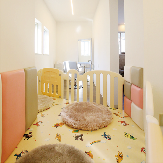 お隣の席にキッズスペース完備。事前予約で施術時間を無料延長することができ、周りを気にすることなくご利用いただけます。